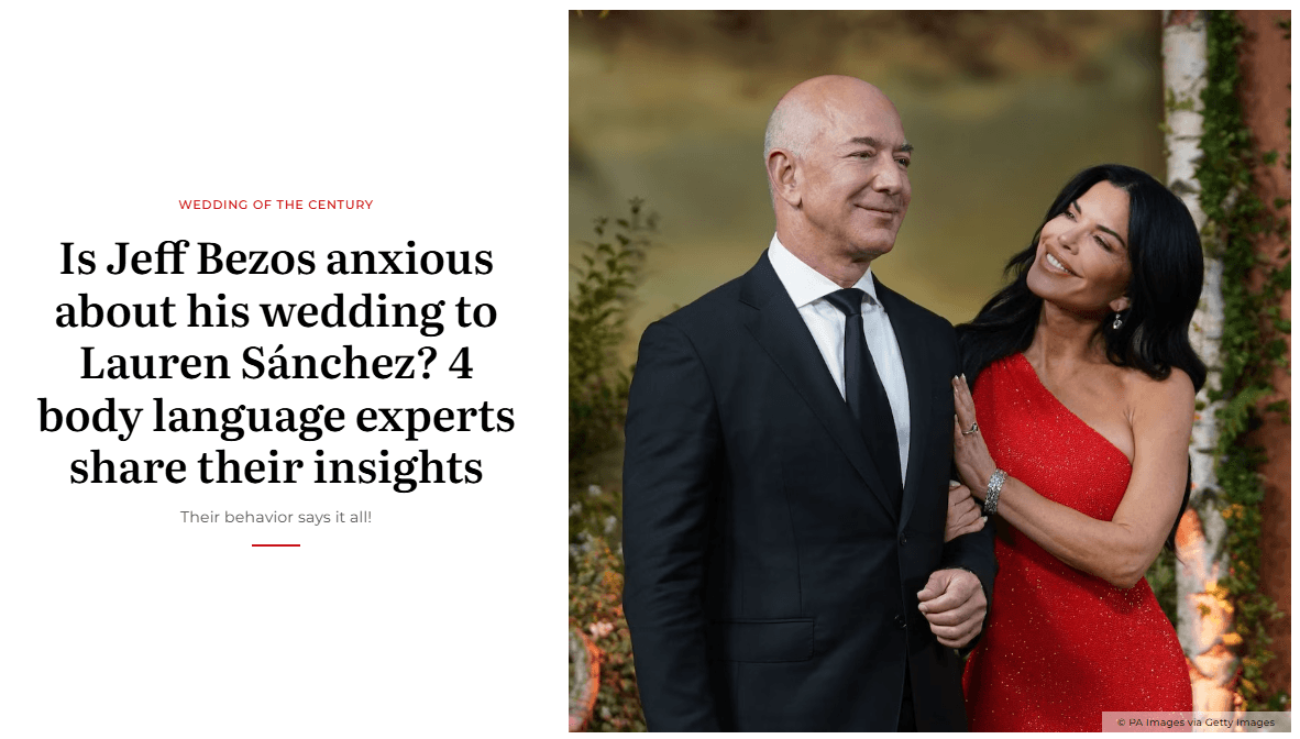 ¡Hola! asked four body language experts to decode Jeff Bezos and Lauren Sánchez's pre-wedding interactions. I was one of them.
